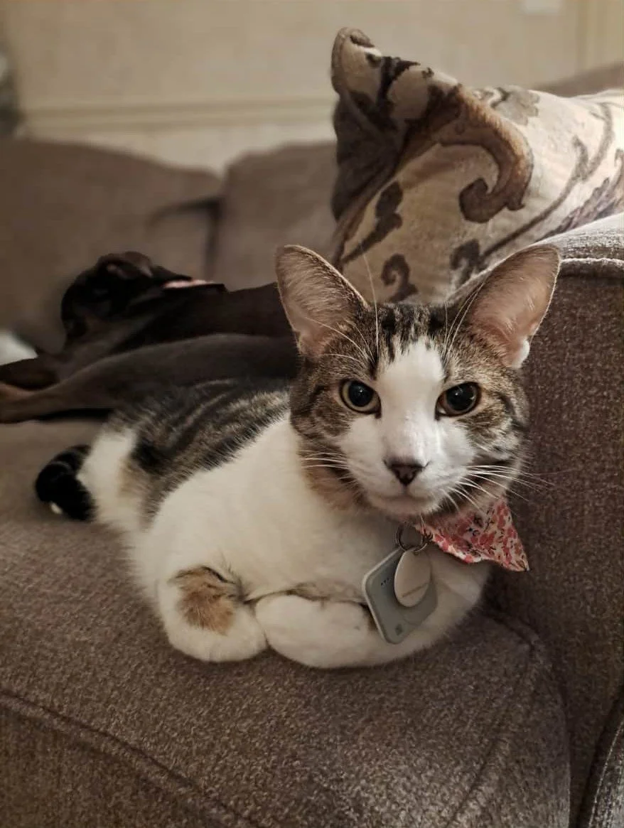 Hi! My name is Louie! I am very nervous to be this month's pet of the month! But im nervous about pretty much everything! Some of my favorite activities are napping, curling up in my mom's bed with my favorite square toy, and fighting with my sister when I have the courage! I'm happy to have the spotlight for this month and then hide for the rest of the year!